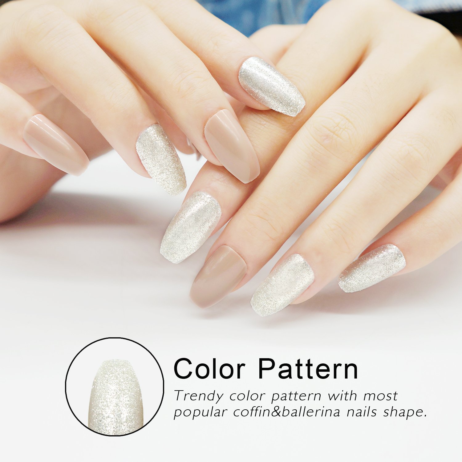 Galleon False Nails Coffin Shape With Designs Glitter 24 Pieces