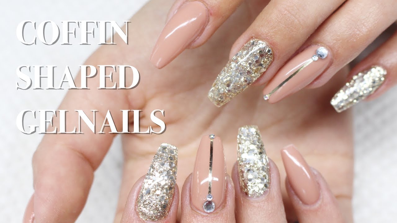 How To Nude Gold Coffin Shaped Gelnails Youtube